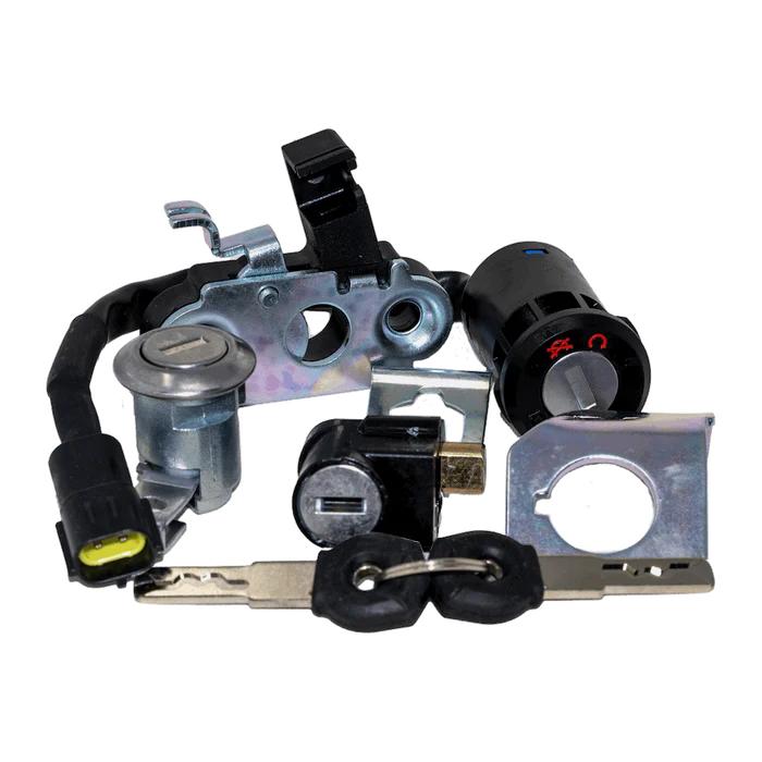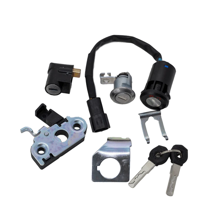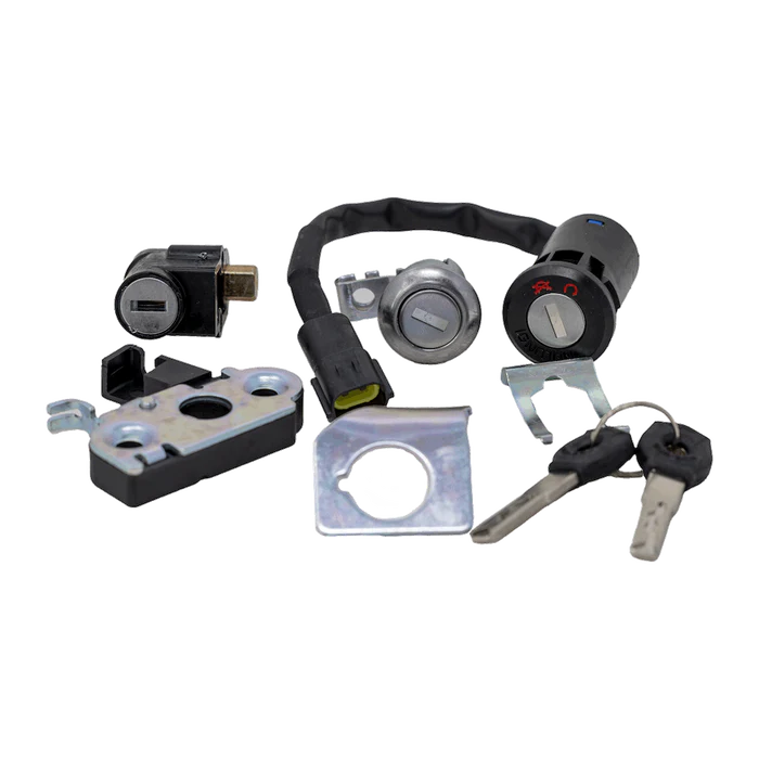 Includes keys, ignition switch, battery compartment lock, and steering lock.